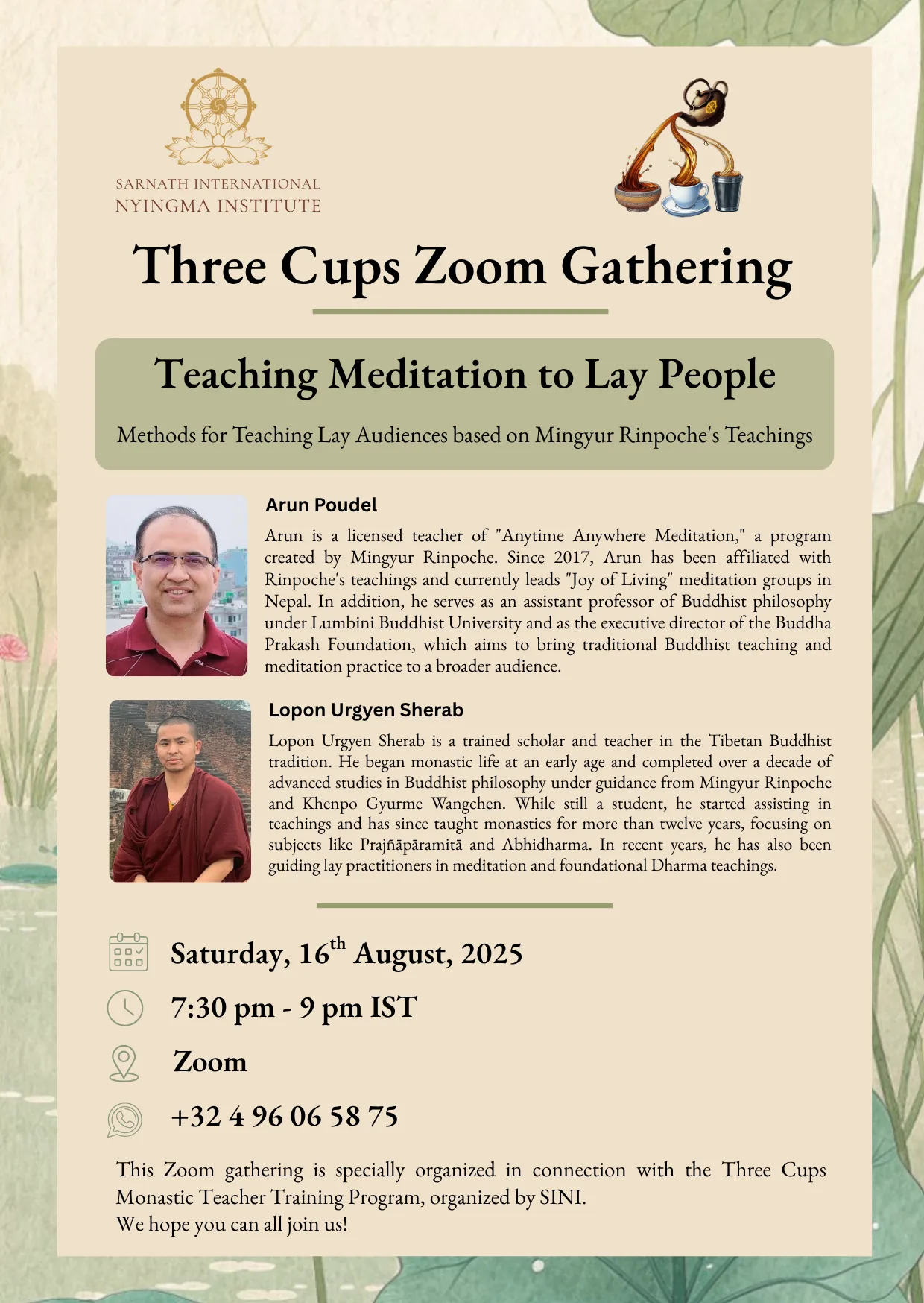 Format: Bilingual (English & Tibetan) with breakout rooms